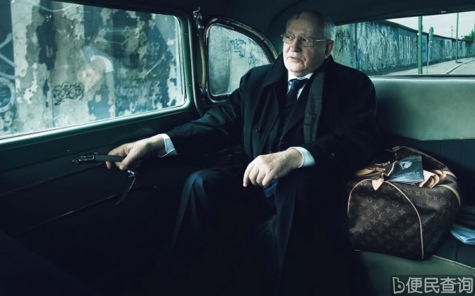 前苏联最后一任领导人戈尔巴乔夫。背景是柏林墙