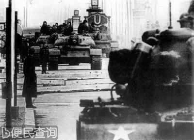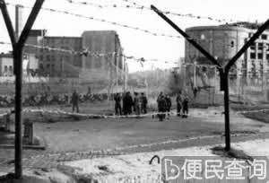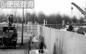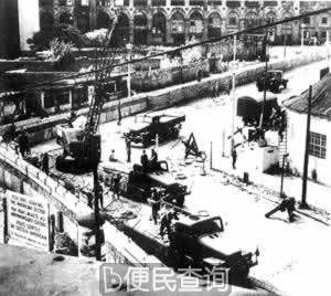 8月12日午夜过后半小时,黑暗无人的大街上警笛狂鸣,矮 墩墩的T-34和T-54型坦克带领着满载德国军队的卡车直奔东西柏 林之间25英里长的边界线。头戴钢盔的东柏林警察乘卡车前往主 要通道站岗。士兵从车上卸下木马、铁丝网、水泥桩柱、石块、 镐头、铁锹。4小时后日出之时,一堵墙的墙基已经形成了。4天以后,墙就完全建起来了,当时仍然留在东柏林的德国人便从此 被禁锢起来,直至1989年。